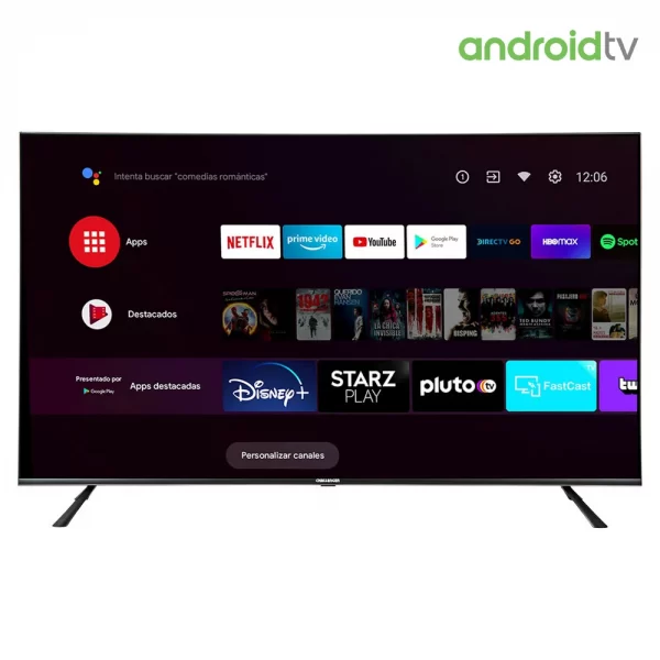 Televisor Android Smart TV de 65″ (164 cm) UHD, TDT, con sistema operativo Android, acceso directo desde desde control a NETFLIX, AMAZON PRIME VIDEO, YOUTUBE. BLUETOOTH de salida de audio y soporte de pared fijo